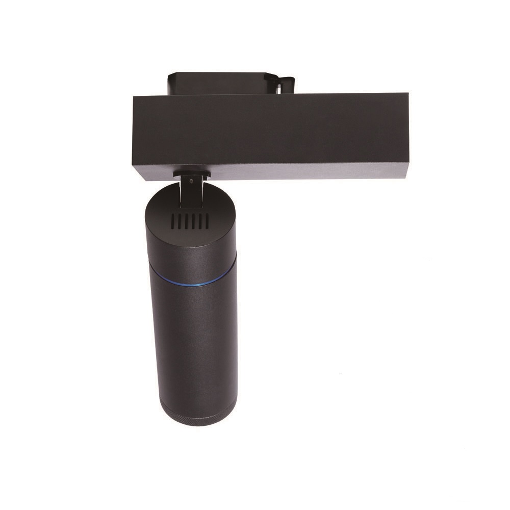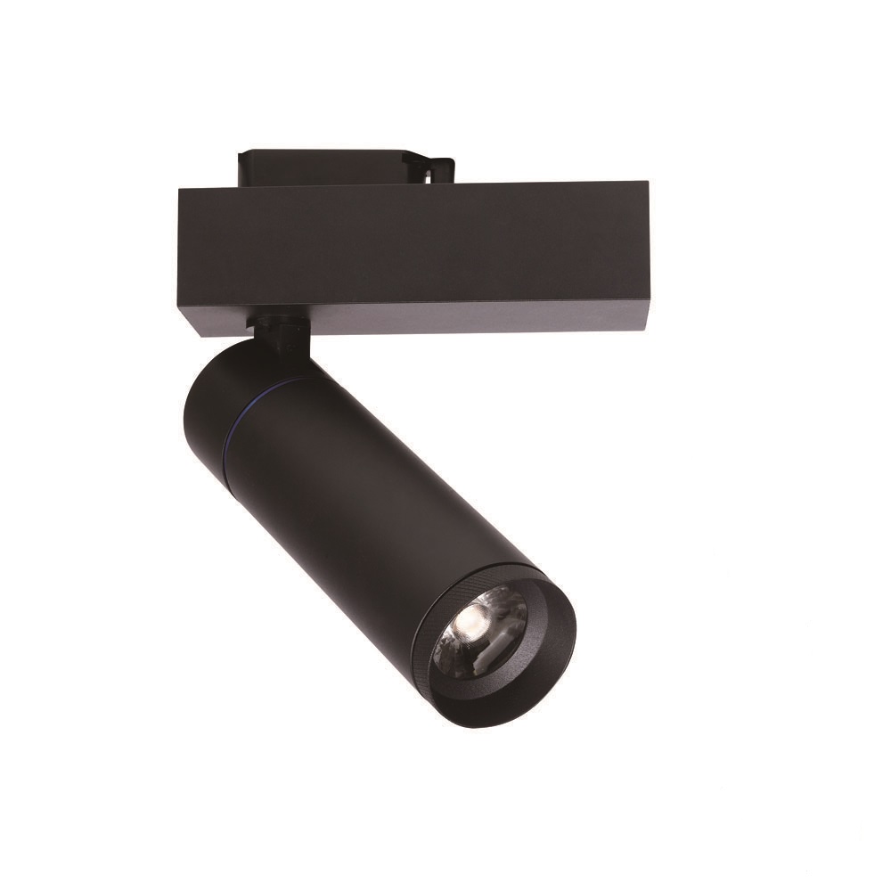 Professionelle LED-Stromschienenstrahler mit einstellbarer Farbtemperatur sowie Dimmen über Funk. Schlankes, unauffälliges Design mit schwarzem Gehäuse. Drei verschiedene Abstrahlwinkel.